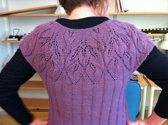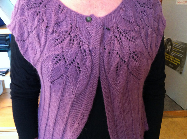 Once I had finished almost all of the xmas presents, I decided to make something for myself! So I took my new knitting book and found this lovely pattern, the Bella cardigan. I got myself four skeins of the very lovely purple alpaca and went to work. Somehow, I felt the sweater was coming out too small so I started knitting even looser than normal. The result was that it was more than twice the size I needed for me. I got to give it to my lovely friend K and got more of the same wool (even the same lot!) to make one for me. I'm almost done with that so I will post more pictures soon!
